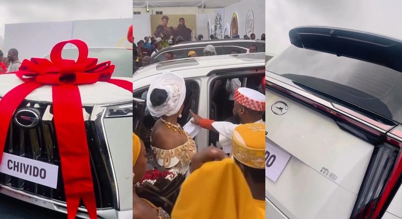 In a video from the ongoing star-studded ceremony in Lagos, the couple were presented with a brand-new white car.